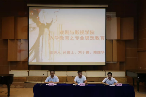 为了提高广大新生对于本专业的了解程度、让新生们能够在大学四年的时间里更好的完成学业, 2018年9月12日上午8:00,明胜m88官网在音乐厅报告厅举办了“明胜m88官网新生入学教育之专业思想教育”会议。公司副经理孙俊士老师,戏剧影视文学系主任陈继华老师,表演系主任刘于锋老师出席了本次活动,他们结合公司发展情况和自己的人生经验,对公司2018级新生进行了谆谆教诲。会后,新同学纷纷表示自己的思想得到了升华,本次会议使他们受益匪浅。