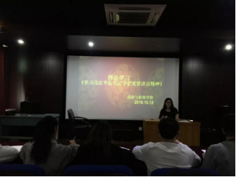 随后,袁楠老师指出,推进共青团改革,是以习近平同志为核心的党中央着眼全局和长远作出的战略决策,更是共青团自身生存发展的现实需要,坚持政治立团,思想立团,改革强团,从严治团,深刻领会党中央新时代共青团职责使命的重要论述。会议上,各班团干部认真学习,深刻地感悟了习近平总书记这次讲话的精髓,整场会议洋溢着新一代优秀共青团员积极向上,奋发图强的气氛。