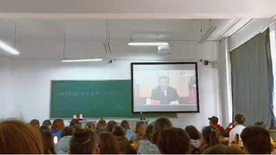 接着赵丹荣老师组织同学们观看了习近平主席在改革开放40周年大会上的重要讲话。随后同学们都踊跃发言、各抒己见,也都纷纷表示会努力学习并彻底贯彻自己大讨论学习中的所得。