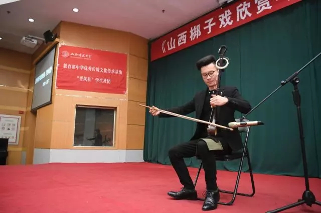 演出汇报刚开始,一曲精彩绝伦的蒲剧板胡独奏《尧乡情》让台下观众连连叫好,瞬间点燃了现场的气氛。