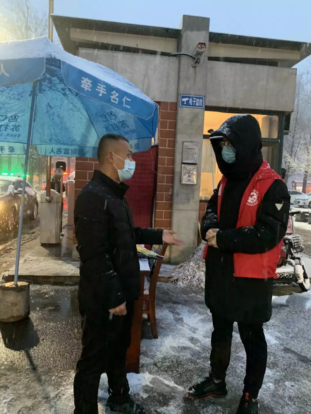 我是明胜m88官网1701班的张高鹏,来自山西省长治市候堡镇,今天是2020年2月27日,长治范围内下起了大雪,身为师大的学子,虽然我不能在国家有难的时候奔赴一线,但是我可以做些力所能及的事情。我妈妈是社区居委会的一员,今天轮到妈妈值班,我跟随着妈妈来到小区的大门口,这里是车辆和人员出入最频繁也是最关键的地方。在这里遇见了我们社区的区长,我向他了解到了我们小区在疫情期间实施的措施,如出入的人员必须携带一卡一证(身份证与小区出入卡),否则小区不让出入;在门口的人行横道和车道边分别站有三至五人的排查小队;挨家挨户落实是否有外来人员、武汉返乡人员等。之后我也积极参与进来,贡献自己的一份力量。我相信在我们共同的努力之下一定会打赢这场战争!武汉加油、中国加油!!