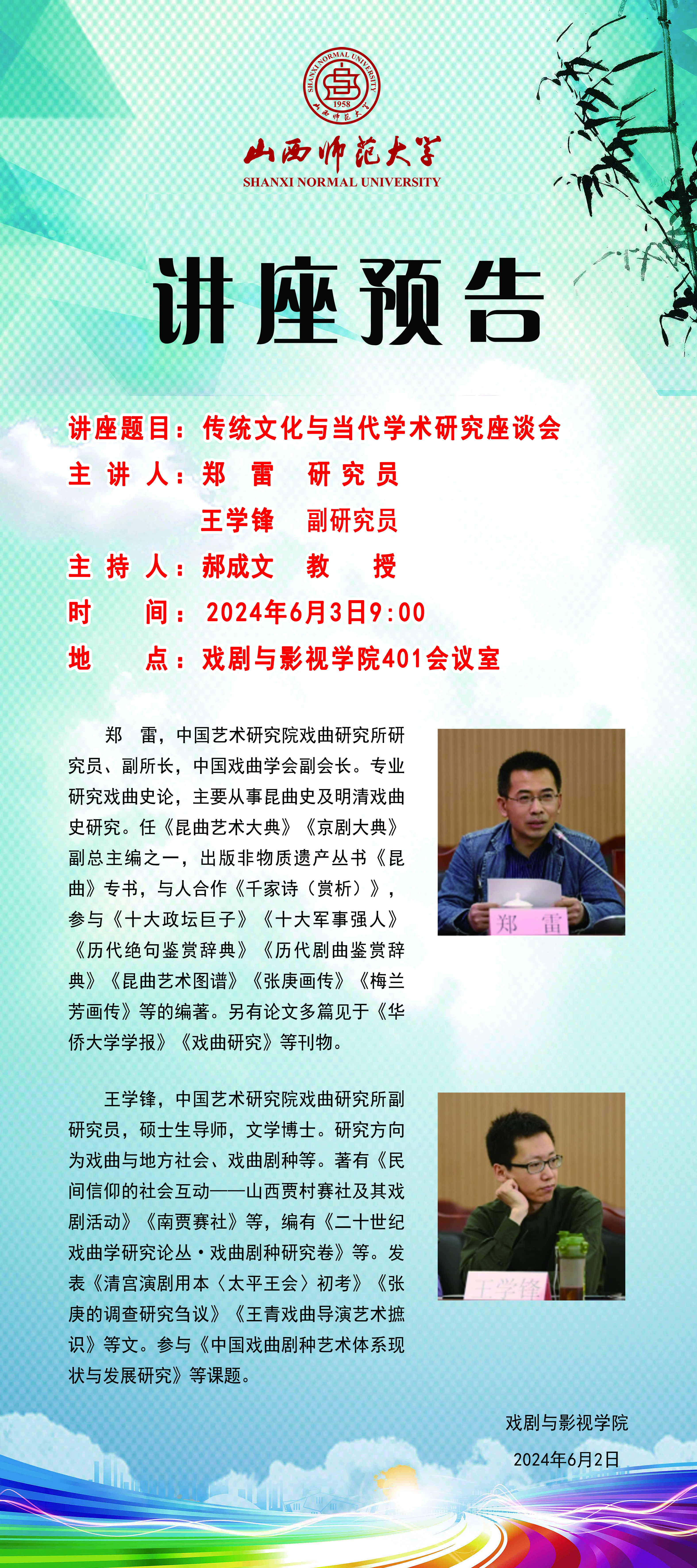 《传统文化与当代学术研究座谈会》讲座预告