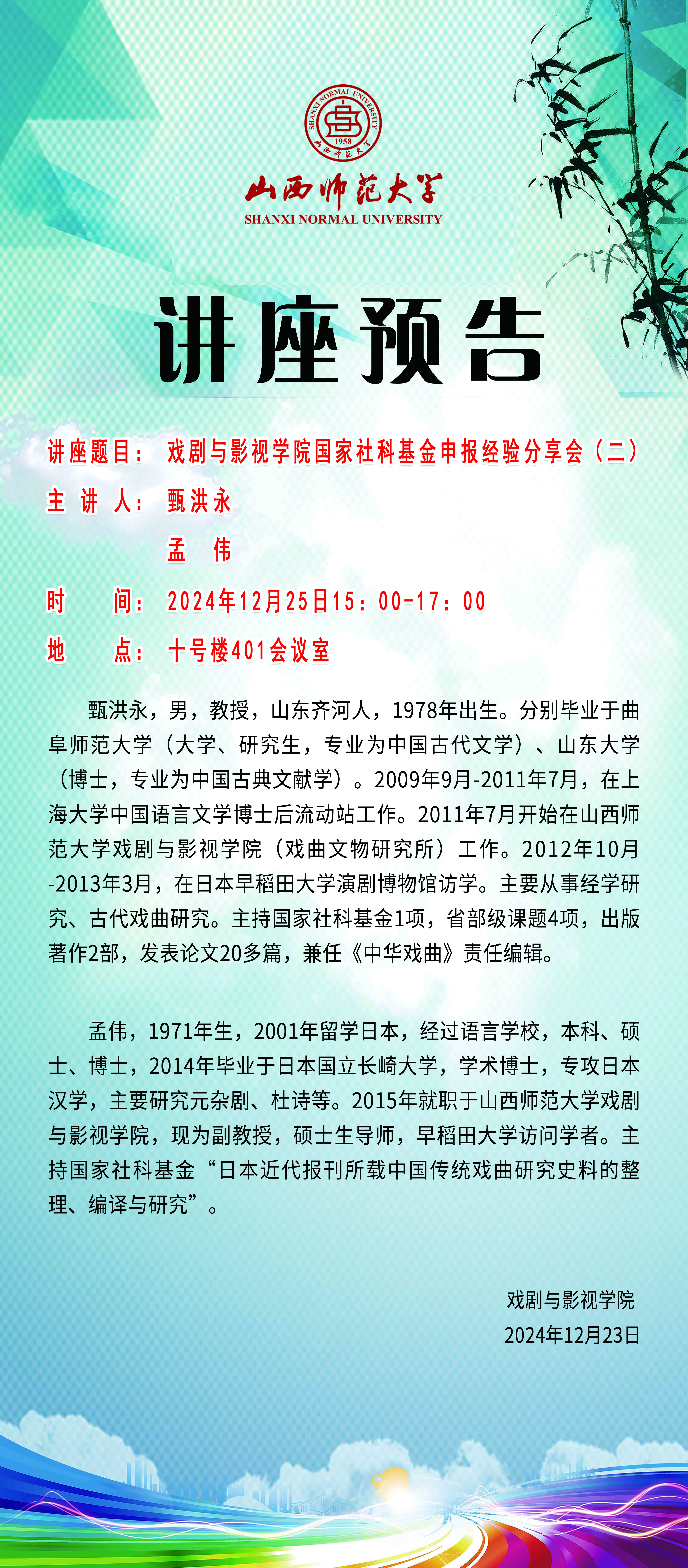 公司拟于12月25日(周三)15:00-17:00在南区10号楼401会议室举办《明胜m88官网国家社科基金申报经验分享会(二)》,主讲人为甄洪永老师、孟伟老师。