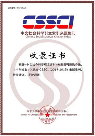 近期,南京大学中国社会科学研究评价中心公布了入选中文社会科学引文索引(CSSCI)(2014-2015)来源集刊目录,公司戏曲文物研究所主办的《中华戏曲》再次被成功收录,成为仅有的五种(CSSCI)艺术类来源集刊之一种。