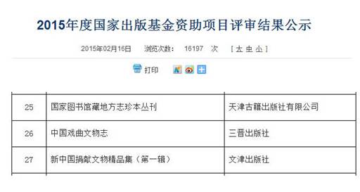 近日,m88官方网站戏曲文物研究所车文明教授组织编纂的《中国戏曲文物志》,由三晋出版社申报,顺利入选2015年度国家出版基金项目资助。