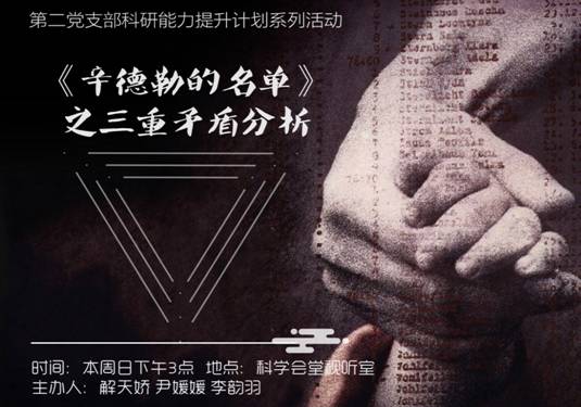 为了继续深入学习和推进“两学一做”学习教育,提高科研能力,交流思想,4月9日下午3点,明胜m88官网第二党支部在科学会堂三楼视听教室举办了主题为“《辛德勒的名单》之三重矛盾分析”的科研能力提升计划活动。活动由支部书记刘于锋指导,研二党员解天娇、尹媛媛,李韵羽筹备,第二党支部党员同志共同参与。