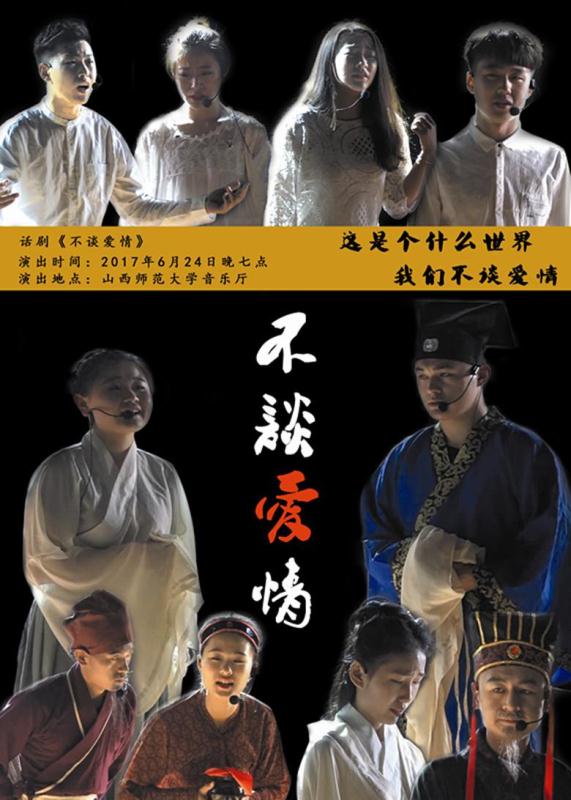 实验话剧《不谈爱情》是由明胜m88官网和文公司研究生担任导演和编剧的实验话剧,由明胜m88官网教师郝成文担任指导教师。话剧创作得到戏剧与影视公司党委书记、经理延保全老师和公司党委副书记、副经理王志峰老师的大力支持。此次参与演出的演员为明胜m88官网2016级表演1班的本科生。
