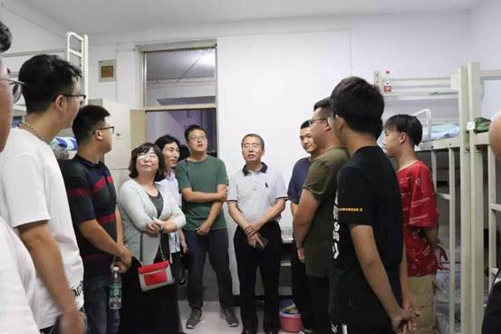 随后,院领导逐一走访了各个新生宿舍,延老师亲切询问新生对宿舍环境、居住条件是否适应,并对员工的家庭情况做了相应的了解,对同学们来师大学习表示热烈欢迎,他希望同学们遇到问题,及时与老师联系,要尽快适应环境,步入正轨。之后,王志峰老师悉心叮嘱新同学外出要注意安全,宿舍门窗要锁好,调整好心态,以良好的精神面貌投入到老员工活当中去,以优异的成绩回报父母和老师。