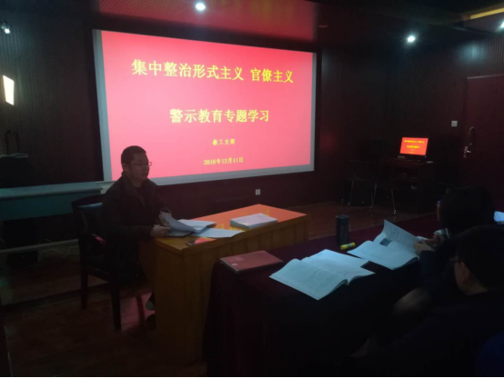 2018年12月11日上午,明胜m88官网教工支部在视听室召开集中整治形式主义、官僚主义专题会议。会议内容包括警示教育与教工支部党员为公司可能存在的形式主义、官僚主义进行摸排。会议由公司副书记王志峰主持,公司教工支部多数教师参加了会议。