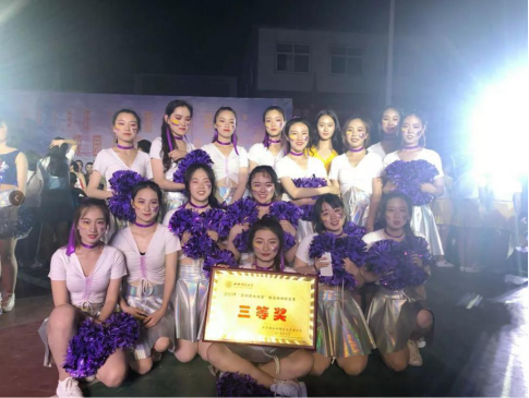 台上三分钟,台下十年功,历时整整两个月的啦啦操训练,队员们顶住了每一天中午炙热的太阳,也顶住了晚上训练时肢体上的疲软。但是她们默默努力,从未抱怨,并且坚定的相信自己,能够在大赛中展现戏剧的风采。音乐响起,队员们纷纷露出最美的笑容,自信昂扬的笑容吸引了在场所有观众的目光。她们的舞蹈活力四射,整齐划一,动作、队形花样繁多且不显杂乱,她们凭借着全员劈叉、双飞燕等一系列难度动作赢得了现场观众的掌声和欢呼。这样几乎“零失误”的完美表演,与她们日日夜夜辛苦的训练是分不开的。她们耳边飞舞的紫绸仿佛是戏剧公司翻飞的旗帜,扬起了戏剧人奋斗拼搏的精神。