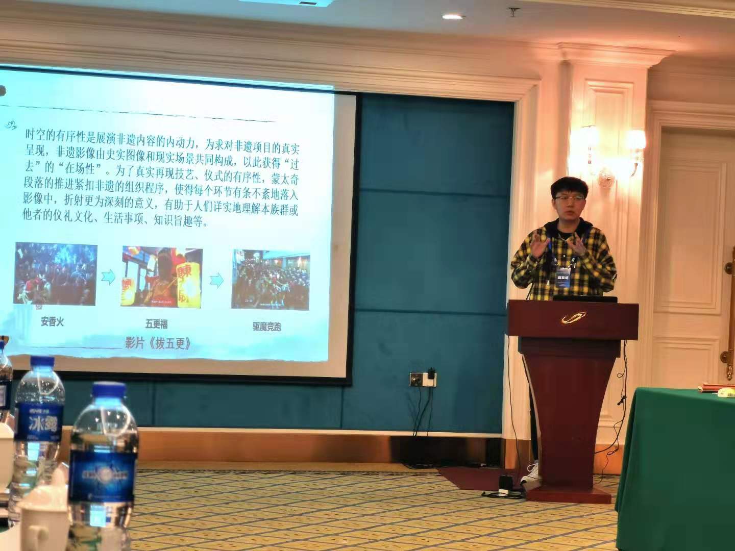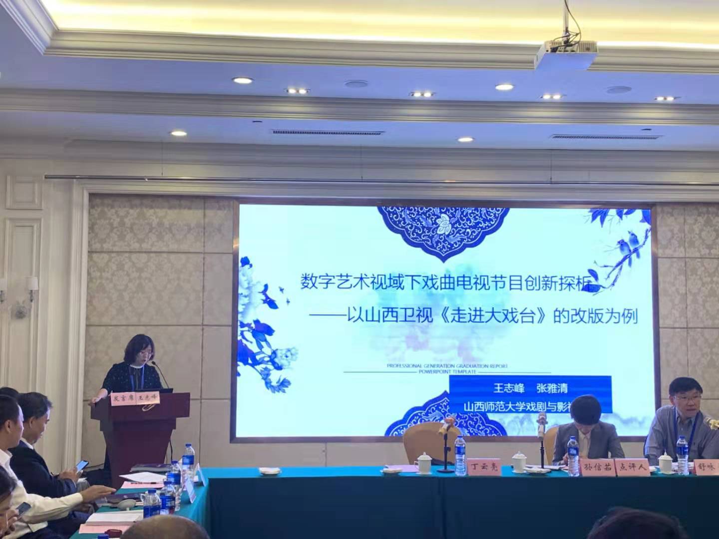 王志峰教授和硕士生张雅清提交的论文《数字艺术视域下戏曲电视节目的创新探析——以山西卫视<走进大戏台>的改版为例》,在会议主题阶段发言,以《走进大戏台》为个案研究,从内容资源、主体传播等方面探析戏曲电视节目在数字艺术时代下的生存之道。博士生朱斌、赵博文提交的论文《非遗影像的文化书写研究》,以“道--器--变--通”的视角探索与归纳非遗影像创作的文化书写策略与意义。分组会议上,王志峰教授在第三学术沙龙作为评议人对相关论文进行了点评与指导,博士生朱斌、赵博文、硕士生张雅清在第四学术沙龙与参会学者、研究人员进行了汇报和深入交流。
