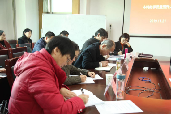 孙俊士副经理首先传达了公司关于提升本科教学质量文件的精神,车文明副董事长提出要对本科教学认识到位,有必要对本科教学质量的提升进行讨论,要做到以本为本,抓住课堂教学,以员工为中心,进行课堂教学改革,提升本科教学质量。