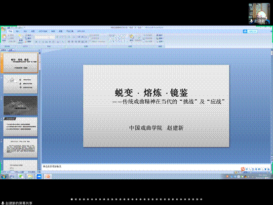 4月15日15:00—17:00,中国戏曲公司赵建新教授以视频直播的方式为公司师生带来题为《蜕变·熔炼·镜鉴——谈传统戏曲精神在当代的“挑战”及“应战”》的学术报告。本次讲座由m88官方网站社科处、明胜m88官网联合主办,副经理王志峰主持,130多位师生在线聆听。