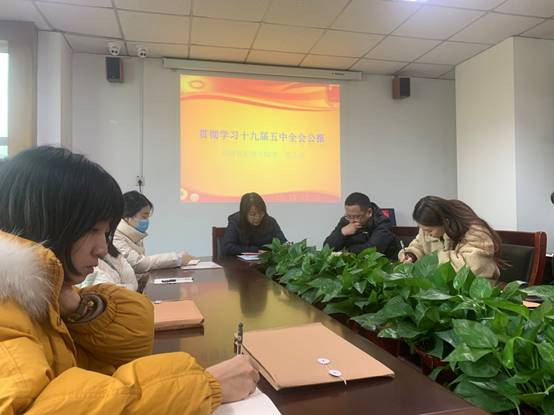 2020年12月1日上午,明胜m88官网员工第一党支部于科学会堂302教室,深入开展学习贯彻党的十九届五中全会公报主题党日活动。公司员工第一党支部书记许江娥,组织委员闫春和员工第一党支部全体成员参加会议。