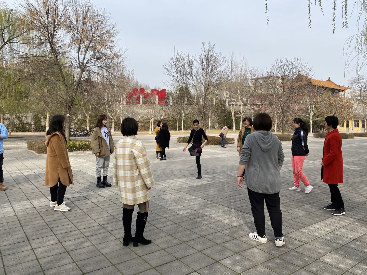 随后,踢毽子游戏也热火朝天地进行了起来。老师们精神抖擞,动作敏捷,正踢、反踢,毽子被接连不断的传递。最后,本次妇女节特别活动在老师们的欢声笑语中落下了帷幕。