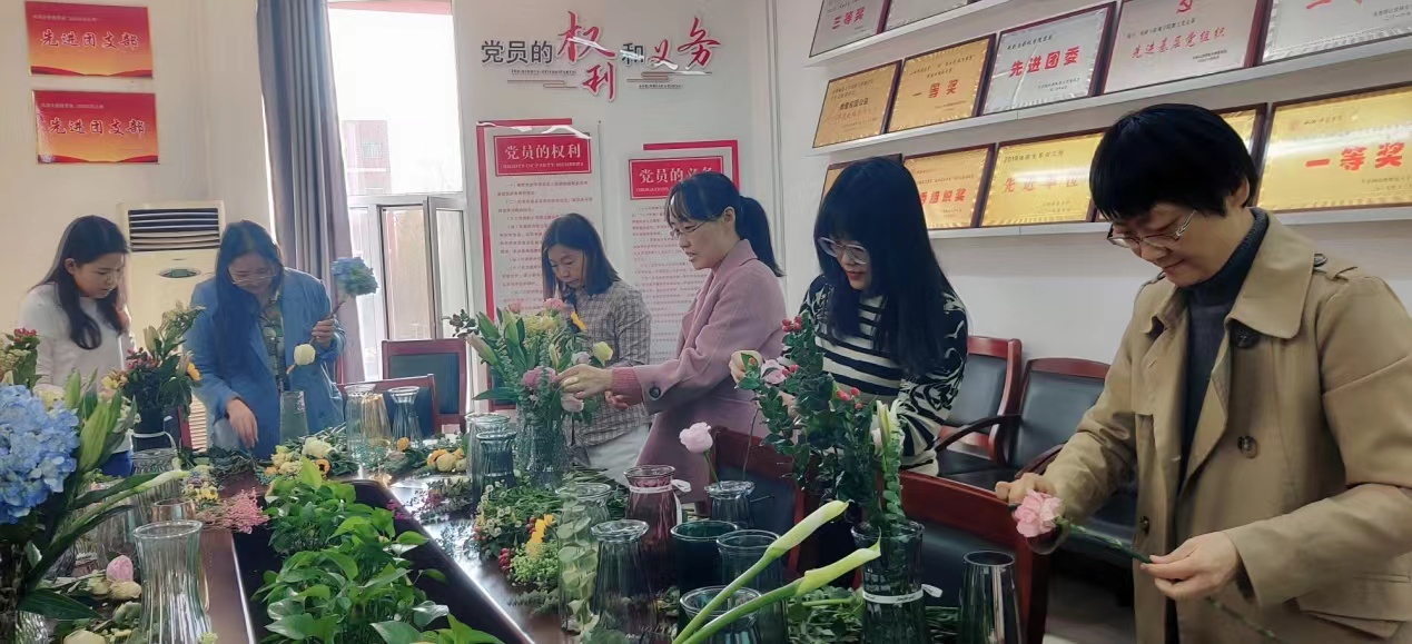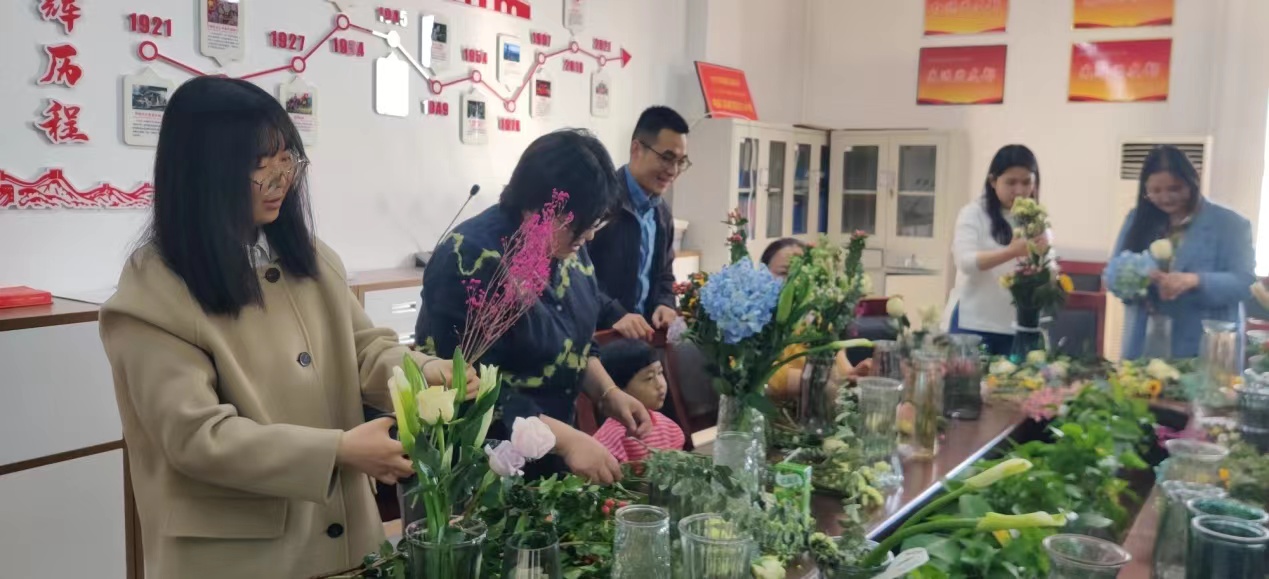 当天,公司党委书记畅海桦、副经理颜汇成和院女教职工积极参与了活动,院工会负责人姜亚平为老师们准备了鲜花、花瓶、剪刀等插花工具。桌子上摆放的玫瑰、康乃馨、百合、向日葵、满天星等各色花卉,弥漫着春日花香的味道,大家选择自己喜欢的花修剪、搭配色彩,沉浸式体验插花艺术的魅力。下午时光很快就过去了,女教师们都手捧自己的作品并合影留念。