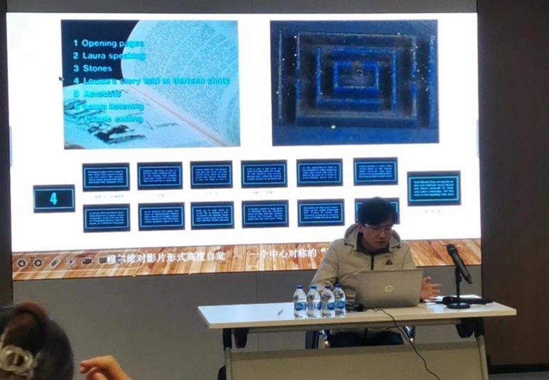 公司三位硕士研究生围绕自身的研究兴趣和学术方向,积极撰写论文,发表主题演讲,全面展示了公司在电影研究领域的新发现、新见解。孙荣同学作了题为《中国早期“同化”论之经典演绎——再读<小城之春>》的汇报发言,文章采取文本分析法,运用中国本土电影理论“同化”论对影片《小城之春》进行深化研究;孟华同学汇报了《不可能世界:当代谜题电影中谜题电影的非自然叙事》一文,文章以非自然叙事理论以及可能世界理论为基础,对当代循环电影进行文本分析,将循环电影中的不可能世界细分为分岔循环、单层循环和跨层循环三类,并进一步论述不可能世界的构成元素;张晋杰同学作了题为《劳拉·穆尔维的女性主义先锋电影创作》的汇报发言,以文本细读的研究方法,阐释分析劳拉·穆尔维的电影创作特点。