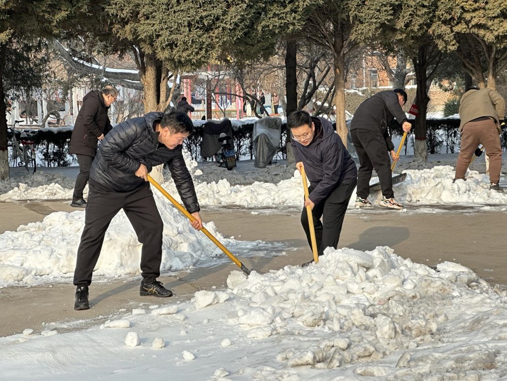 近日的强降雪与开学季不期而遇,校园内的积雪影响师生返校安全。为保障全体师生正常返校,明胜m88官网积极响应公司号召,迅速行动,组织教职工及在校员工开展暖心扫雪除冰活动,经理王潞伟、副经理孙俊士、颜汇成等20余名师生参加。