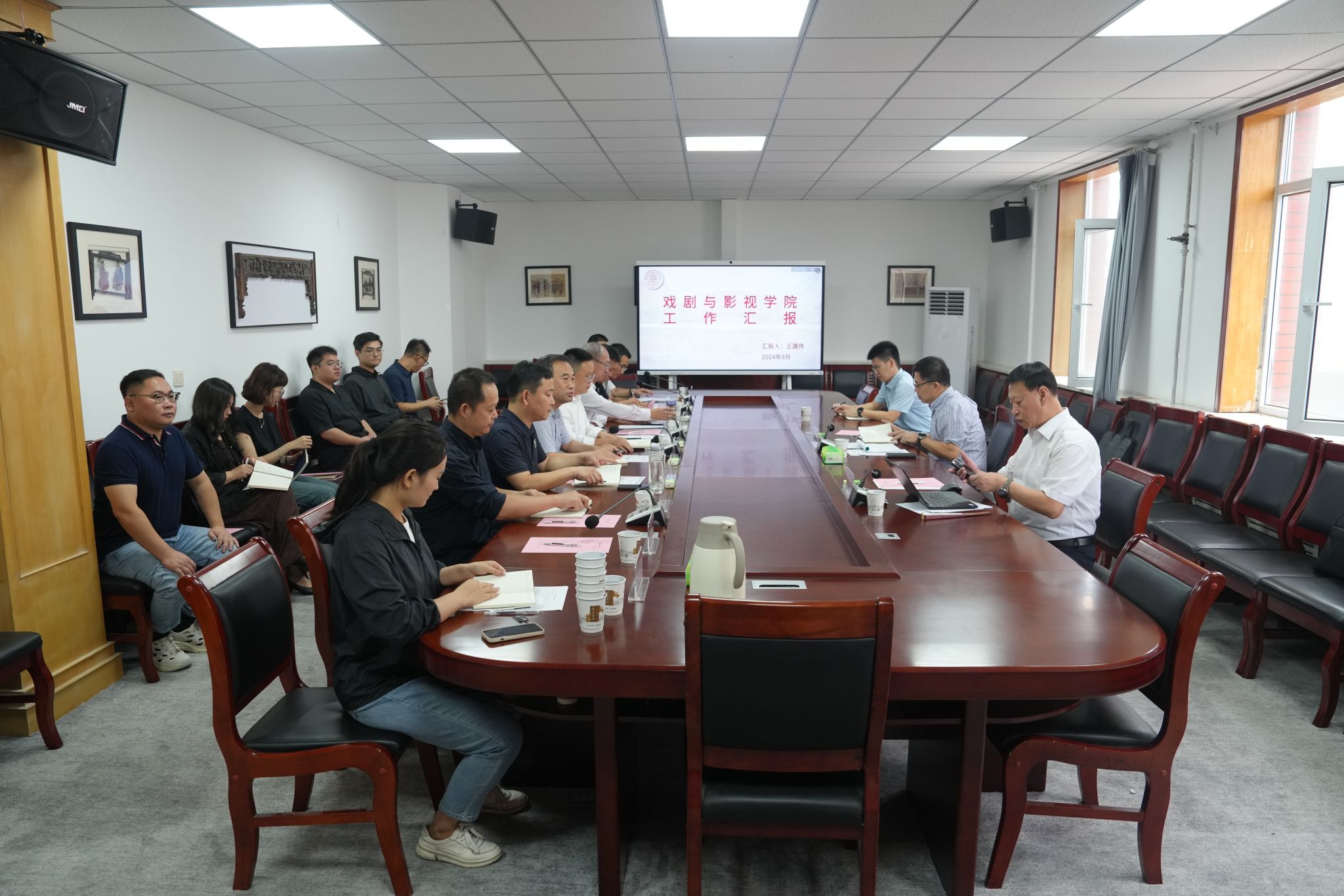 会上,经理王潞伟代表公司,从特色优势、品牌亮点、存在问题及解决办法、对标院校、预期目标、实现路径、政策支持等方面,汇报了公司的基本情况。车文明教授围绕戏曲博物馆和艺术学科的建设工作提出了意见和建议。甄洪永教授围绕职称评定、《中华戏曲》刊物建设等方面提出了意见和建议。孟雁翎副教授围绕表演专业教师职称评定等方面提出了意见和建议。