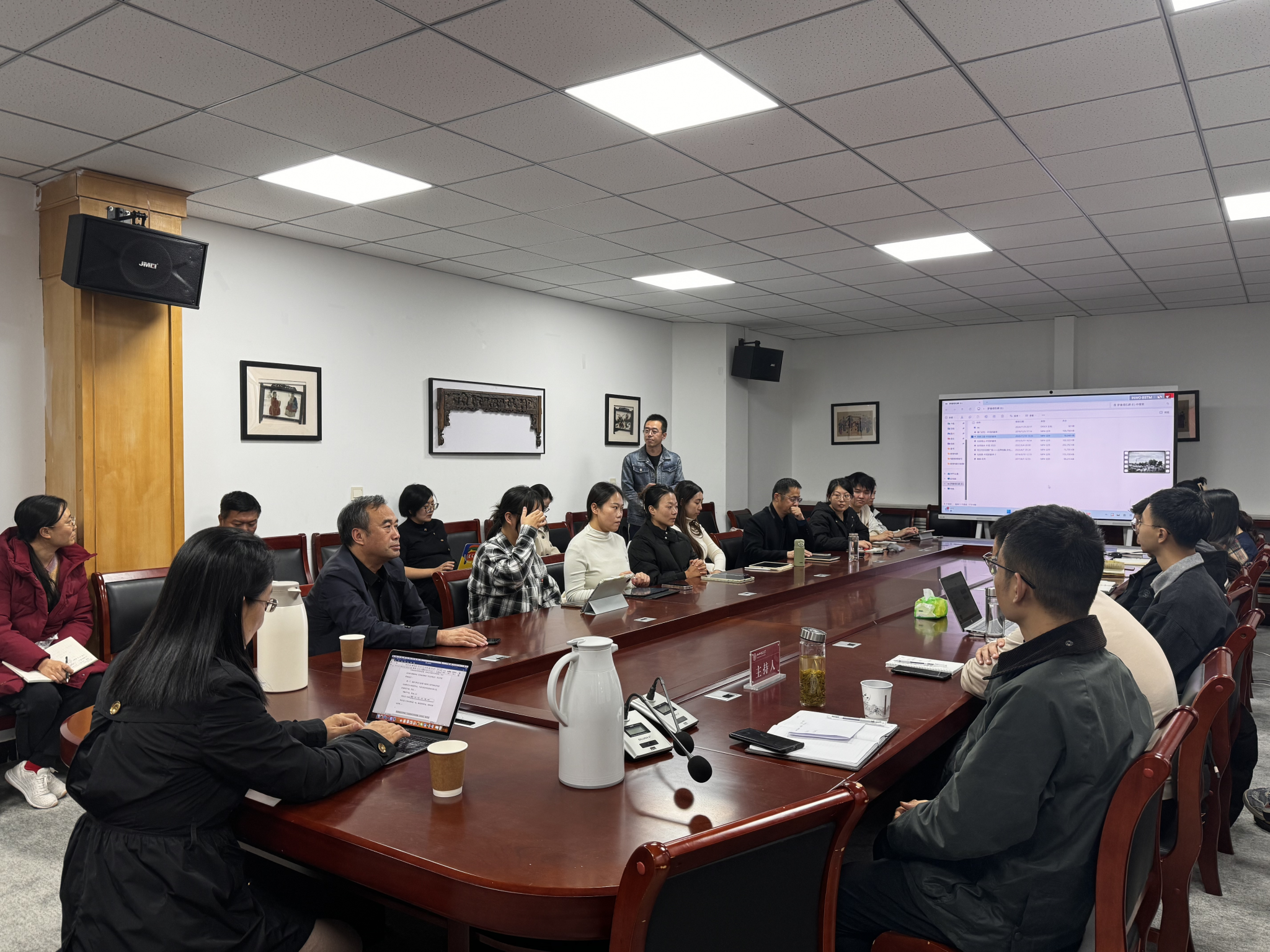 2024年11月13日下午,国家一级导演、高级编辑郝蕴导演应邀来到公司,于401会议室开展《IN—纪录片创作的经验与实践》专题讲座,此次讲座由颜汇成教授主持,公司党委书记畅海桦、副经理孙俊士及部分教师、硕博士生共同参与。