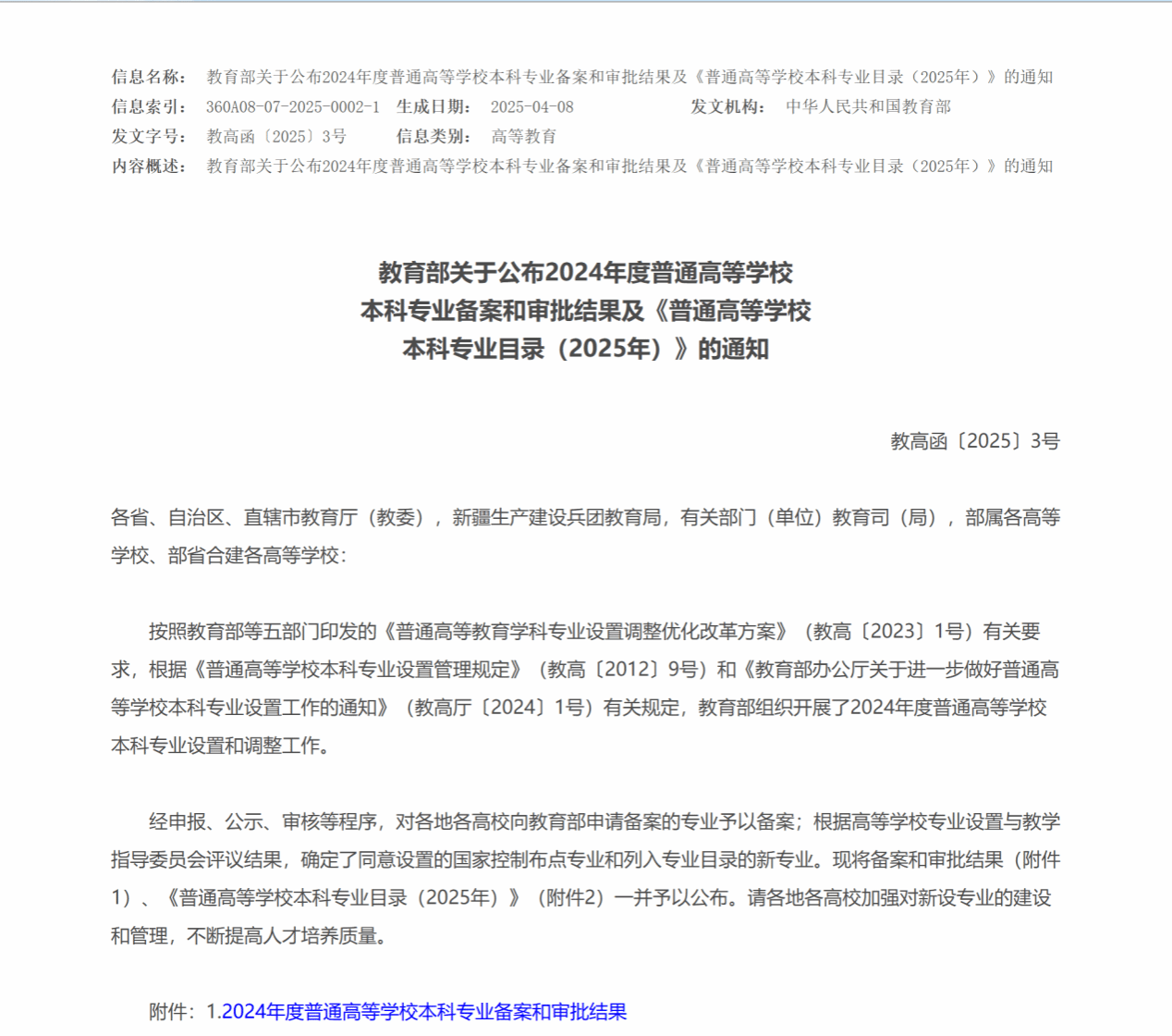近日,教育部公布了2024年度普通高等公司本科专业备案和审批结果,全国高校共新增专业点1839个,公司申报的非物质文化遗产保护专业成功获批。