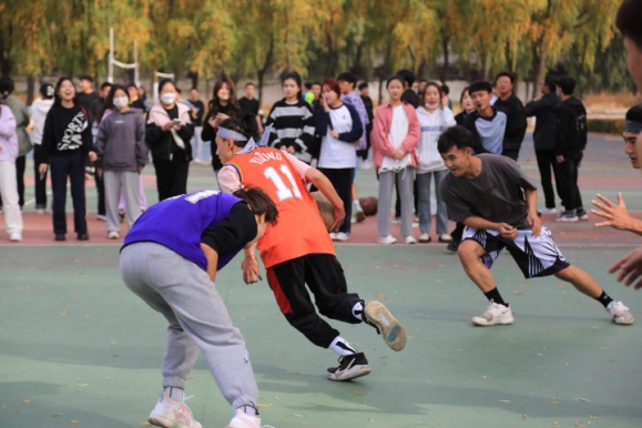 本次比赛共分为三个队伍进行比赛,分别是大一年级队伍、大二年级队伍以及大三大四高年级队伍。采取车轮战的形式,年级之间进行对决。赛前,参赛同学在裁判员的指导下熟悉比赛规则,积极进行热身运动。随着哨声响起,双方队员迅速进入备战状态。赛场上,球员们精神饱满、斗志昂扬,运球、传球、抢球、断球、投篮一系列动作行如流水,穿梭于比赛场地之中。展示出同学们良好的身体素质和扎实的篮球基本功,场下观赛的同学不时发出阵阵掌声和喝彩声。裁判员严肃认真,尽自己最大的努力判决好每一个球,保证比赛的公正性。现场气氛紧张激烈,队员之间相互配合默契,彰显了戏剧学子积极进取的精神面貌。全体参赛同学在团队协作中展示出个人能力,真正发扬了“友谊第一、比赛第二”的精神,赛出了水平,赛出了风采,呈现了一场异彩纷呈的篮球赛。