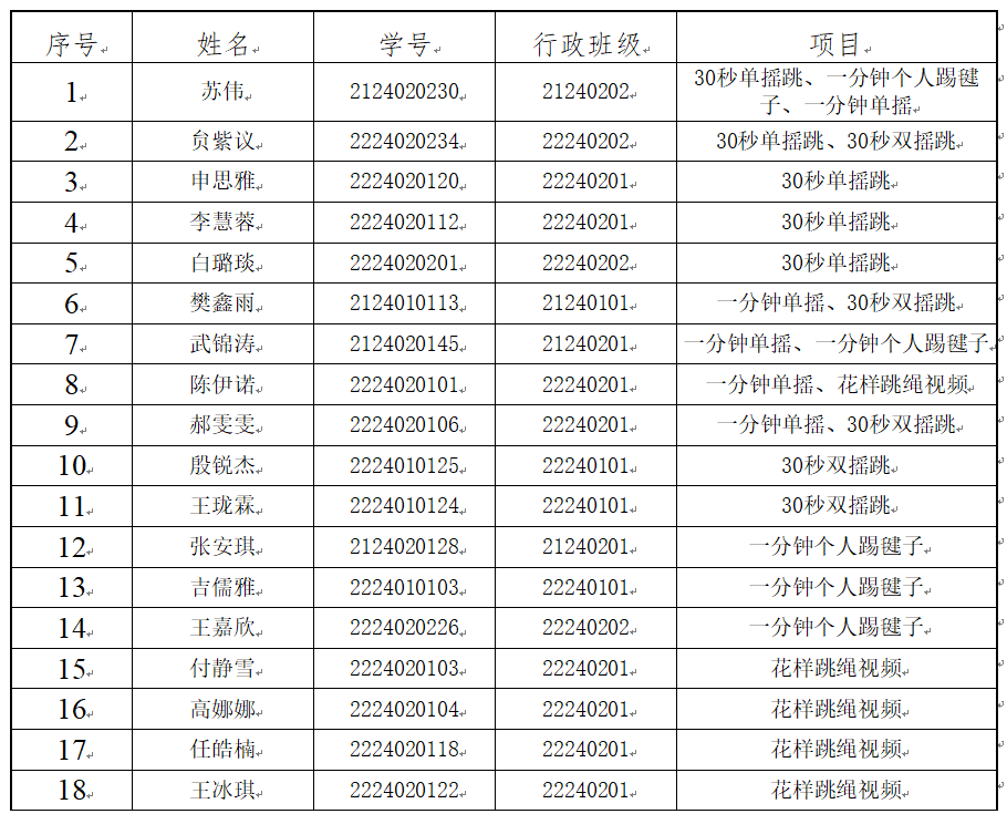 本次选拔赛共有四个项目,分四个区域同时进行。在比赛开始前,同学们积极进行热身运动,情绪高涨。比赛开始后,同学们有序参加个人项目,活动顺利开展。一些同学在比赛中表现突出,苏伟同学在30秒单摇跳、一分钟单摇跳和个人踢毽子比赛中取得了优异成绩,樊鑫雨、张安琪、贠紫议等同学在比赛中也脱颖而出。在场同学的积极与努力,充分体现出戏剧学子的体育精神和青春风貌。