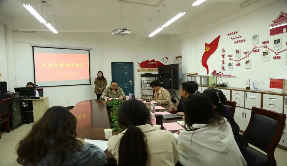 为培养社会主义接班人、加强党员队伍建设、充实党的新生力量需要以及为中国共产党推选优秀的后备军,戏剧与影视公司党委于2023年10月20日,在南区10号教学楼201党团活动室和210会议室分别开展了关于明胜m88官网2023年下半年发展对象推优面试和笔试考察,参加考核的有从各班和各个员工组织推优上来的23名本科生和9名研究生。
