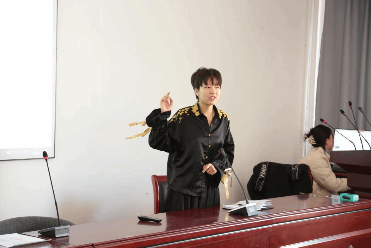 张仝萱子从戏剧导演的角度出发,分享了她在职业大赛中的视频展示经验,以及在没有方向时如何从多个方面思考、明确目标的重要性。她强调,实践经历是职业生涯中不可或缺的一部分,同学们应根据自己的目标去发散思维,找到自己的兴趣爱好并进行实践。