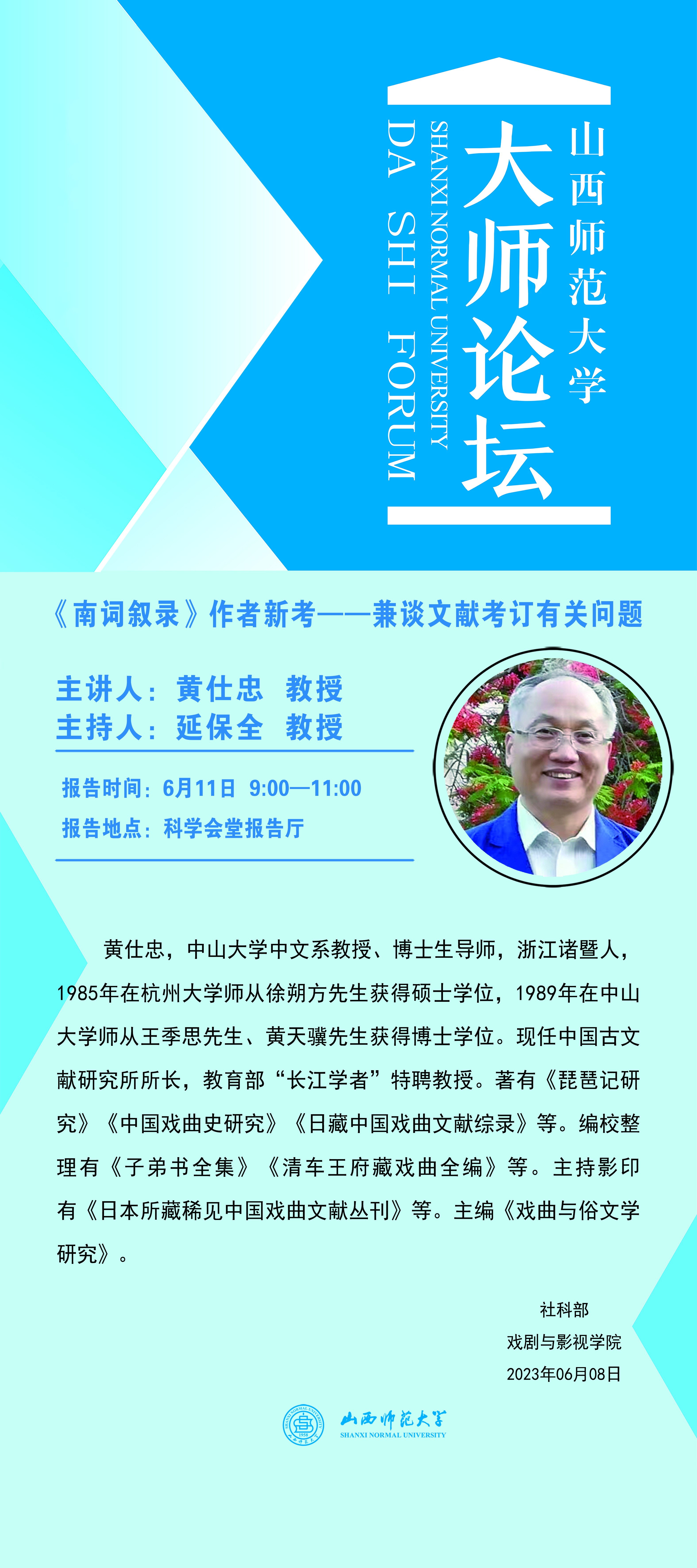 大师论坛:6月11日中山大学黄仕忠教授讲座